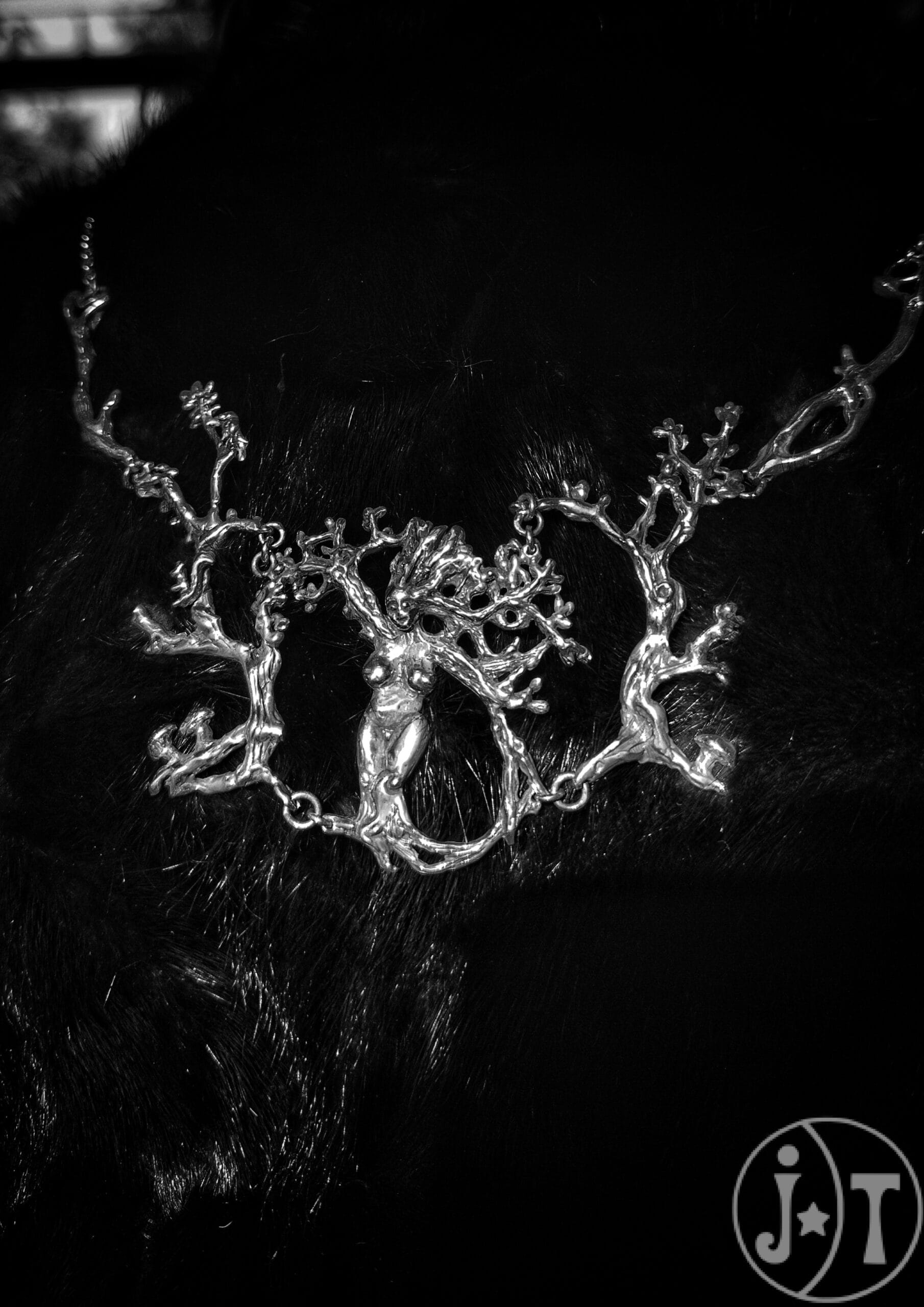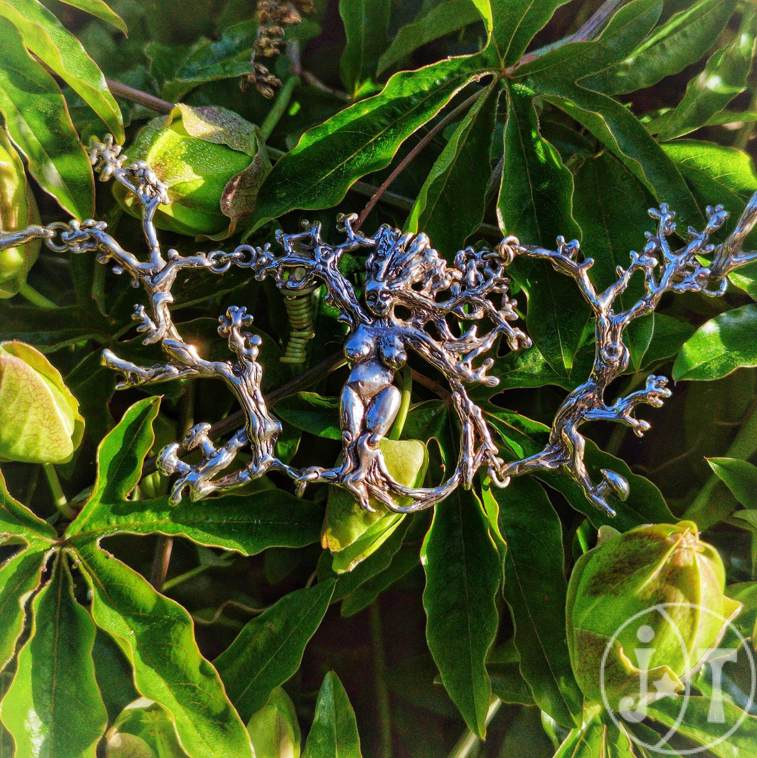 Laat je omhullen door de natuur met de Gaia Bosgodin Halsketting. Dit unieke handgemaakte sieraad van Janne Terink is meer dan een ketting; het is een miniatuurwereld van 122 mm breed en 45 mm hoog. De Gaia godin zit in het midden, gevormd als een woud met bewegende takken die de ketting haar dynamische vorm geven. Kijk goed en ontdek de geheime bewoners van dit woud: kleine paddenstoelen aan de basis van de bomen, een nieuwsgierige eekhoorn op een tak en een zingend vogeltje. Elk detail is met liefde en vakmanschap gemaakt. Een perfect sieraad voor iedereen die de magie van de natuur wil dragen.